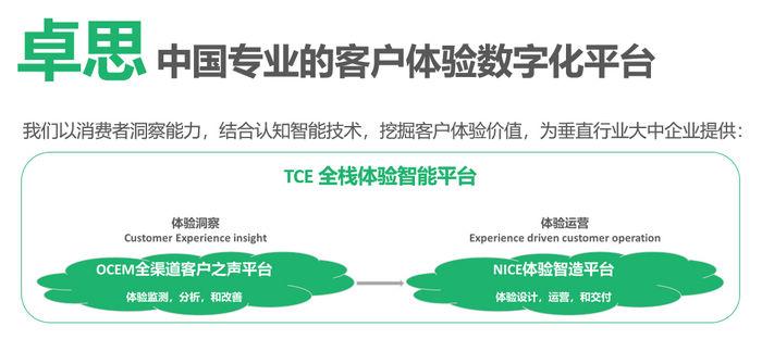 2016年,卓思成立研發中心,在核心技術研發、智能硬件架設、SaaS/PaaS產品開發等方面持續投入,完成了具有廣泛覆蓋和實時反饋特性的客戶體驗觸點網絡建設。同時,基于海量的客戶體驗數據資源、先進的NLP和認知圖譜技術,以及深刻的行業洞見,卓思搭建了以認知智能技術驅動的OCEM全渠道客戶之聲平臺及NICE體驗智造平臺,為企業提供全客戶、全渠道的實時體驗監測、分析和改善。